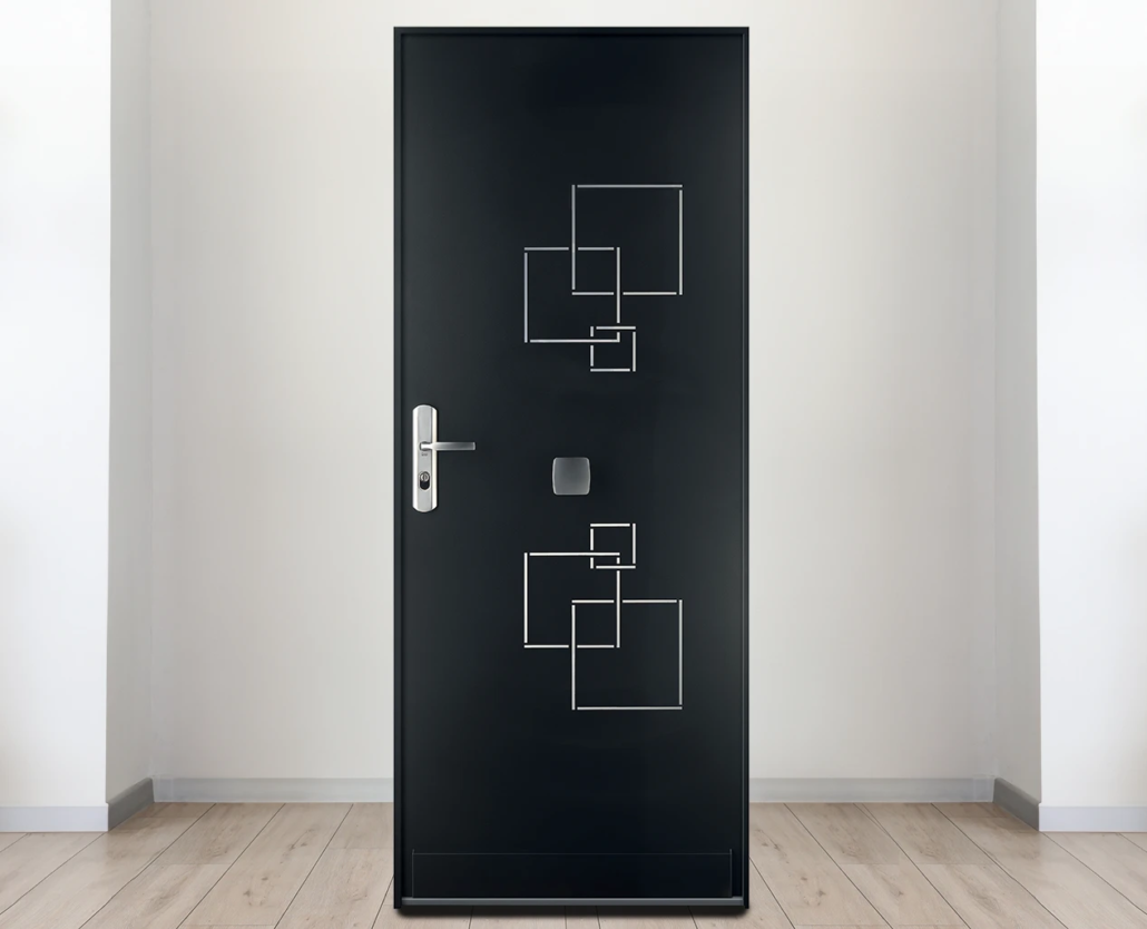 Blindage : 2 faces acier peint avec double rupture de pont thermique (vantail + bâti) + tôle de blindage intérieure